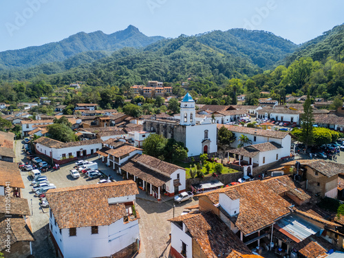 © Carlos Flores, Fototapeta premium Church of San Sebastian del Oeste and in the Background the Cerro de la Bufa. Jalisco, Mexico