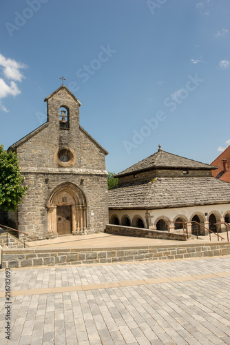 © vicenfoto, Fototapeta premium Church of Santiago in Roncesvalles under blue sky
