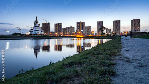 © kirillk, Naklejka premium Church of the Holy God's builders at sunset against the backdrop of a clear sky