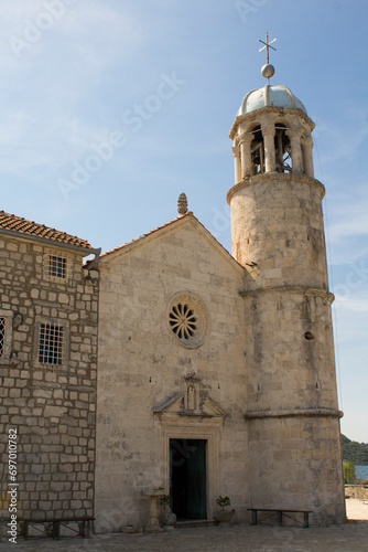 Fototapeta premium Church of the Mother of god on the island. Close-up. Perast. Montenegro.