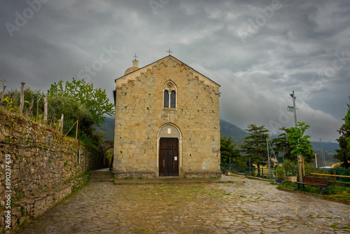 Fototapeta premium Church of Volastra with cloudy sky, Liguria, Italy