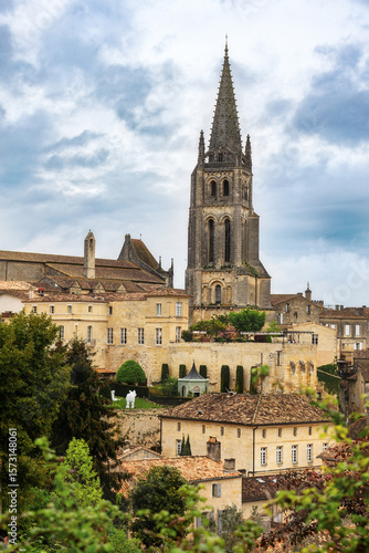 © Nataliya, Fototapeta premium Church Saint-Emilion cityscape in cloudy light. France