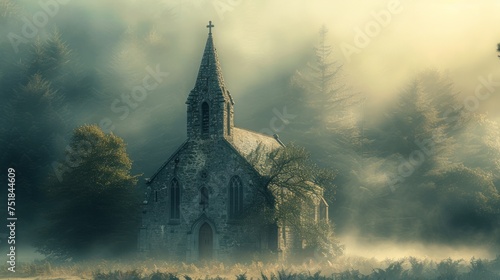 © ArtCookStudio, Fototapeta premium Church Standing in Field