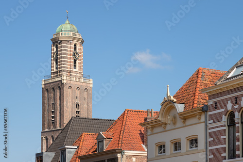Fototapeta premium Church tower - De Peperbus, in the center of the Dutch city of Zwolle in Overijssel.