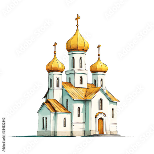 © Kavita, Obraz premium Church with golden domes and Orthodox crosses