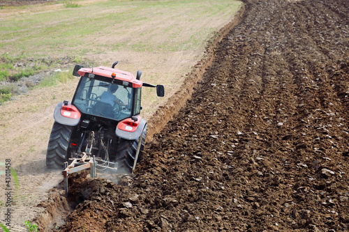 © Federico Rostagno, Naklejka premium Ciągnik orzący pole