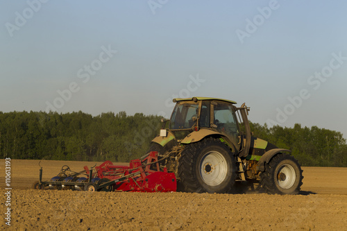 © oleghz, Obraz premium Ciągnik w polu do prac rolniczych