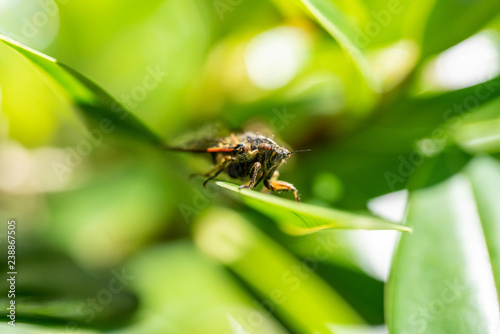 © Acres, Naklejka premium Cicada insect on a leaf in New Zealand
