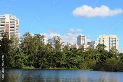 Fototapeta premium Cidade, mata e lago