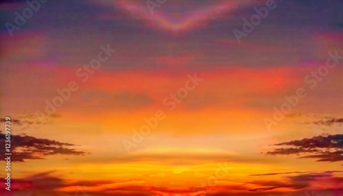 © l1gend, Obraz premium Ciel bleu avec nuages ​​au coucher du soleil. Panorama. Coucher de soleil doré orange vif. Fond de ciel coloré en soirée. Large bannière. Espace de copie.