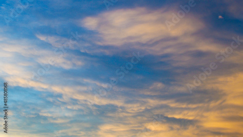 Fototapeta premium Ciel jaunâtre à l'aspect tourmenté, pendant le crépuscule. Une instabilité résiduelle persiste