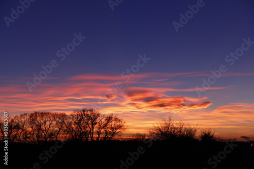 © helenedevun, Fototapeta premium ciel rouge vent en chemin