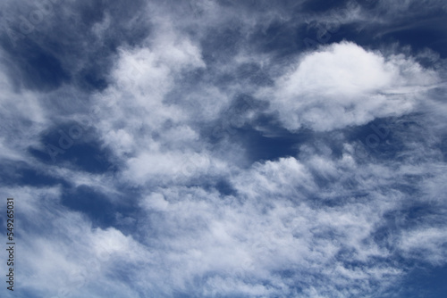 Fototapeta premium Cielo azul con nubes blancas. Cielo nuboso con nubes altas (cirros).