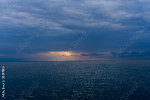 © Cesar, Obraz premium Cielo nublado con rayos de sol mar