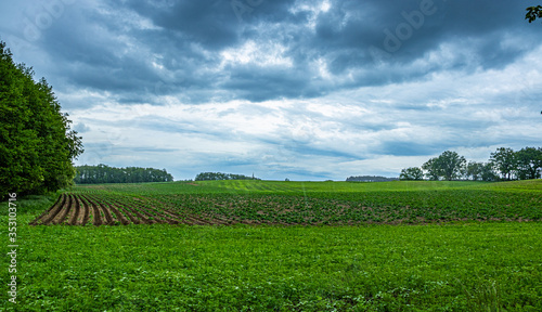 Fototapeta premium Ciemne chmury burzowe nad polem