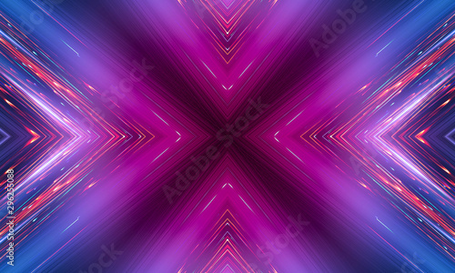 © MiaStendal, Obraz premium Ciemne tło futurystyczny. Neonowe linie świecą. Neonowe linie, geometryczne kształty. Różowa i niebieska poświata. Streszczenie neonowe światło, wgląd nocy.