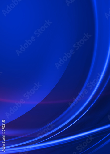 © Laura Сrazy, Naklejka premium Ciemne tło z neonowymi liniami, blask. Niebieskie tło zamazane pole, efekty świetlne.
