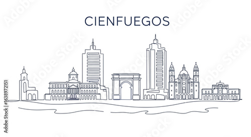 Obraz premium Cienfuegos Cityscape: A minimalist outline captures the architectural...