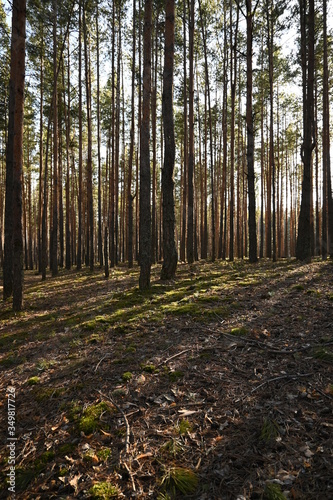 © Сергей Дмитриев, Fototapeta premium cienie drzew w lesie iglastym