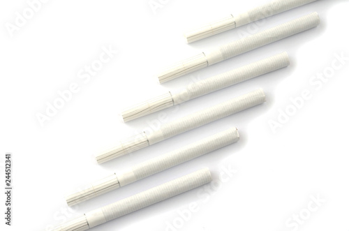 © Valerii, Fototapeta premium Cigarettes in different position on a white background.