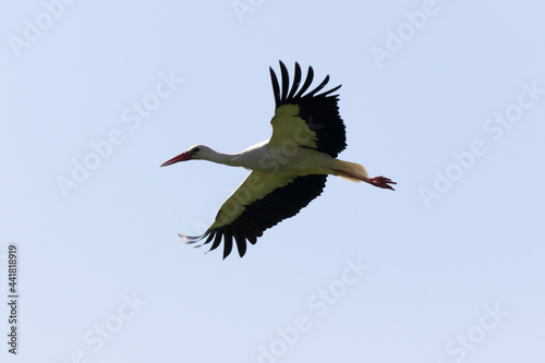 © denis, Obraz premium Cigogne blanche Ciconia ciconia en chasse dans une prairie