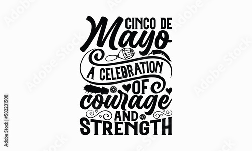 Naklejka premium Cinco de Mayo A celebration of courage and strength - Cinco de Mayo T-Shirt Design, Vector illustration with hand-drawn lettering, typography vector,Modern, simple, lettering and white background, EPS