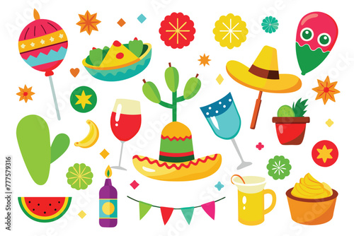 Fototapeta premium Cinco de mayo birthday elements and icons vector on an isolated background