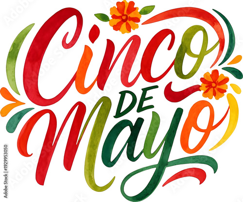 Obraz premium Cinco de Mayo festive script typography watercolor illustration