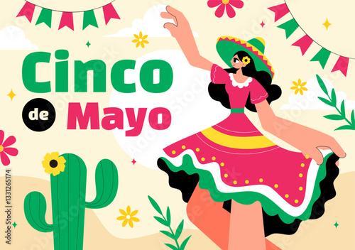 Fototapeta premium Cinco de Mayo Mexican Holiday Celebration Vector Illustration Featuring...