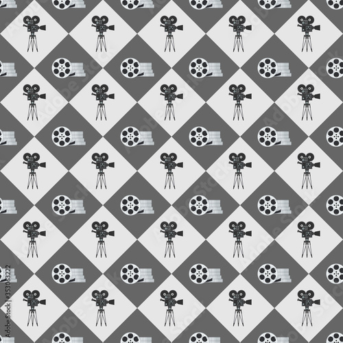 Fototapeta premium Cinema seamless pattern. Wallpaper with movie camera and film reel.