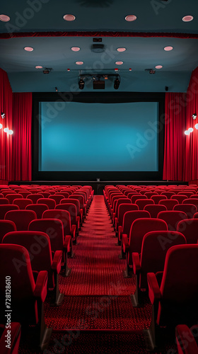 © Lin_Studio, Obraz premium cinema theater with red seats and red curtains