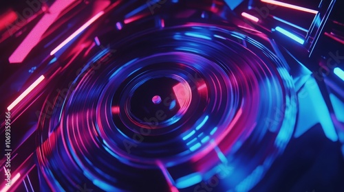 Obraz premium Cinemagraph loop of a vinyl record spinning with neon lights; retro vibe