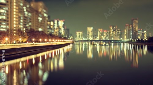 © Cyqueen, Fototapeta premium Cinematic city night view with copy space, abstract bokeh and light trails for versatile commercial and creative projects