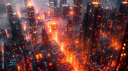 Fototapeta premium Cinematic Data-Driven Futuristic Cityscape with Dramatic Lighting and...