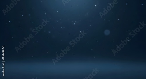 Fototapeta premium Cinematic deep blue background with shimmering bokeh particles and soft light...