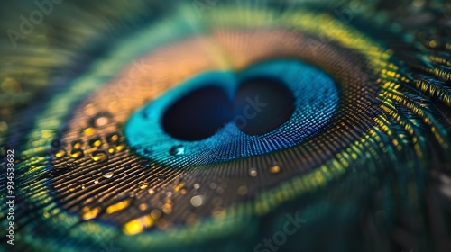 © ArtStage, Naklejka premium Cinematic details of a peacock feather focused on its patterns in minimalist style AI generated illustration