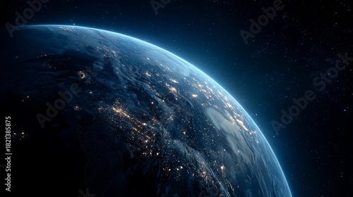 Obraz premium cinematic earth from space with glowing city lights and deep blue atmosphere