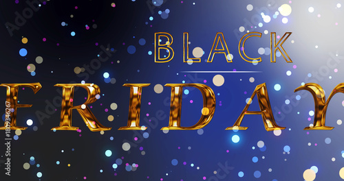 © PhoenixStock, Naklejka premium Cinematic Gold Black Friday typographic animated particle flowing bg. Sales business expansion, advertisement backdrop for promotion of Mid night discount. Deal of the day, best offer of the year