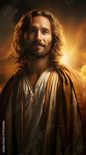 Naklejka premium Cinematic Jesus Christ, Against the background of fire