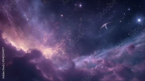 Fototapeta premium Cinematic outer space scene featuring a glowing galaxy, vibrant purple...