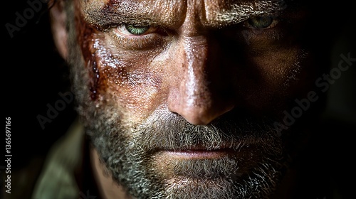 © AI04, Obraz premium Cinematic photography featuring a zombie in the dark horror theme