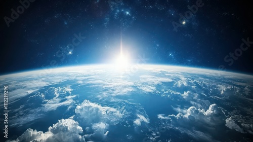 © BROTHER, Obraz premium Cinematic shot of planet earth globe clouds and space background.