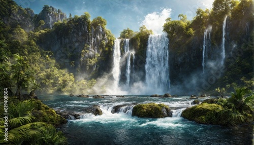Obraz premium cinematisch aussehende landschaft mit traumhaften wasserfall, island, irland schottland