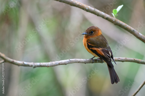 Fototapeta premium Cinnamon Flycatcher (pyrrhomyias cinnamomeus). Small flycatcher resting on...