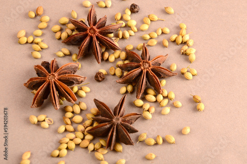 © Raksha Shelare, Fototapeta premium Cinnamon stick and star anise spice.