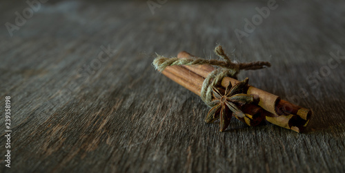 © OLEKSII, Fototapeta premium cinnamon stick on old wooden background