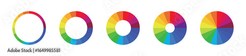 © AJEN Stock, Fototapeta premium Circle chart diagram set. Set of color wheel, pie chart elements - Stock Vector