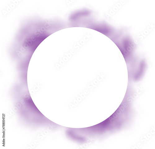 © Mariia, Obraz premium Circle cloud frame. Purple round steam fluffy air shape. Abstract realistic smoke border. Cloudy tunnel effect with space illustration