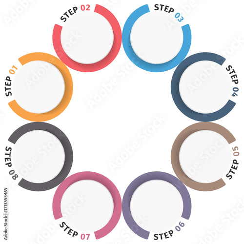 Obraz premium Circle diagram with eight elements, steps or options, flowchart or workflow...