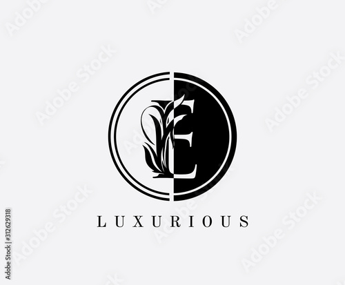 Fototapeta premium Circle E Letter Floral Logo. Luxury E Swirl Circle Logo Icon